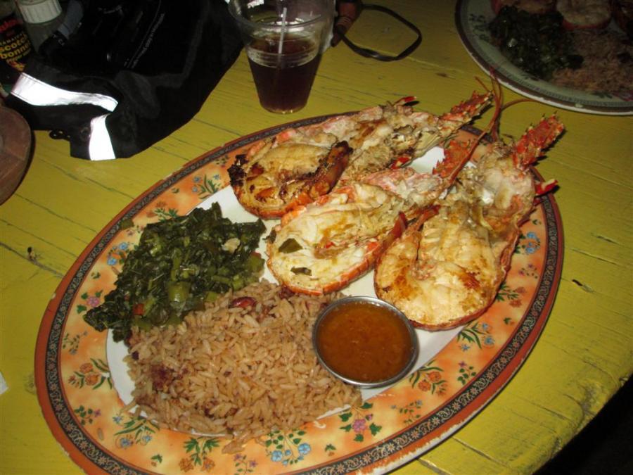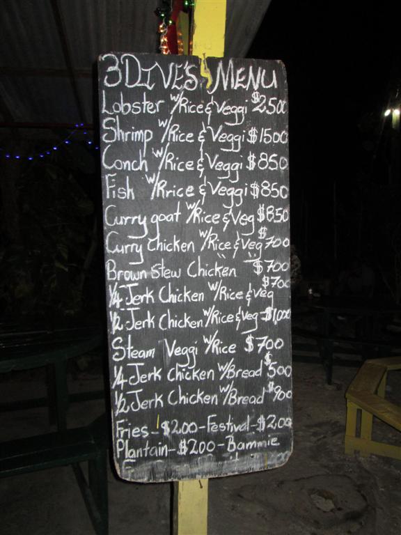 We went to 3 Dives for sunset and lobster and jerk chicken - Nice portions for a very reasonable price. Service was great. Nice cold - cold Red Stripe Lights! Had one of the Lights with Lime flavour - pretty good! Great sunsets from here too! The Barrels are just off the side of the road and watching some of those vehicles coming around the bend - like those big buses coming back from Ricks - you just hope none of them come flying off the road.