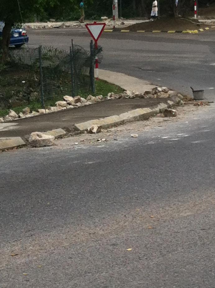 Still before dinner, sidewalk repair in town and look at them soursop!