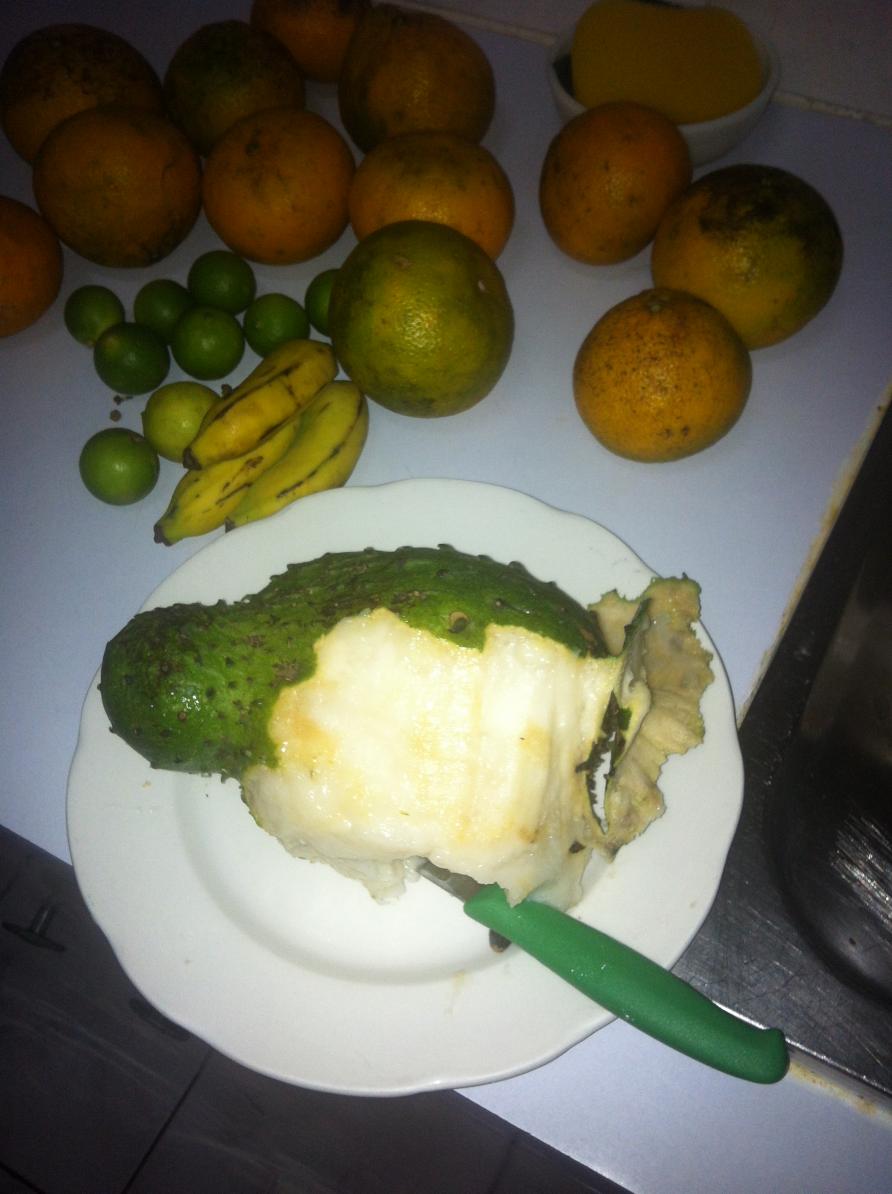 I had 2 sour sops squeezed into juice for me. Them are ugly but the juice is deleicious
