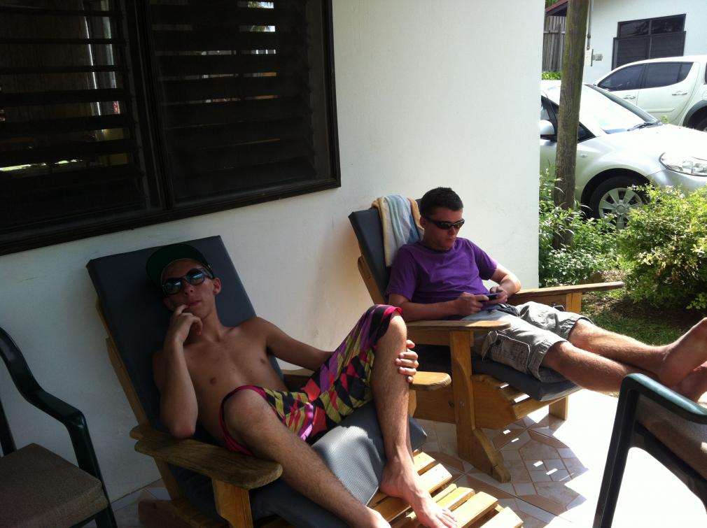 Morning day 2, aug 1st, and the arrival of Flip!, We are all relaxed after a long first day!