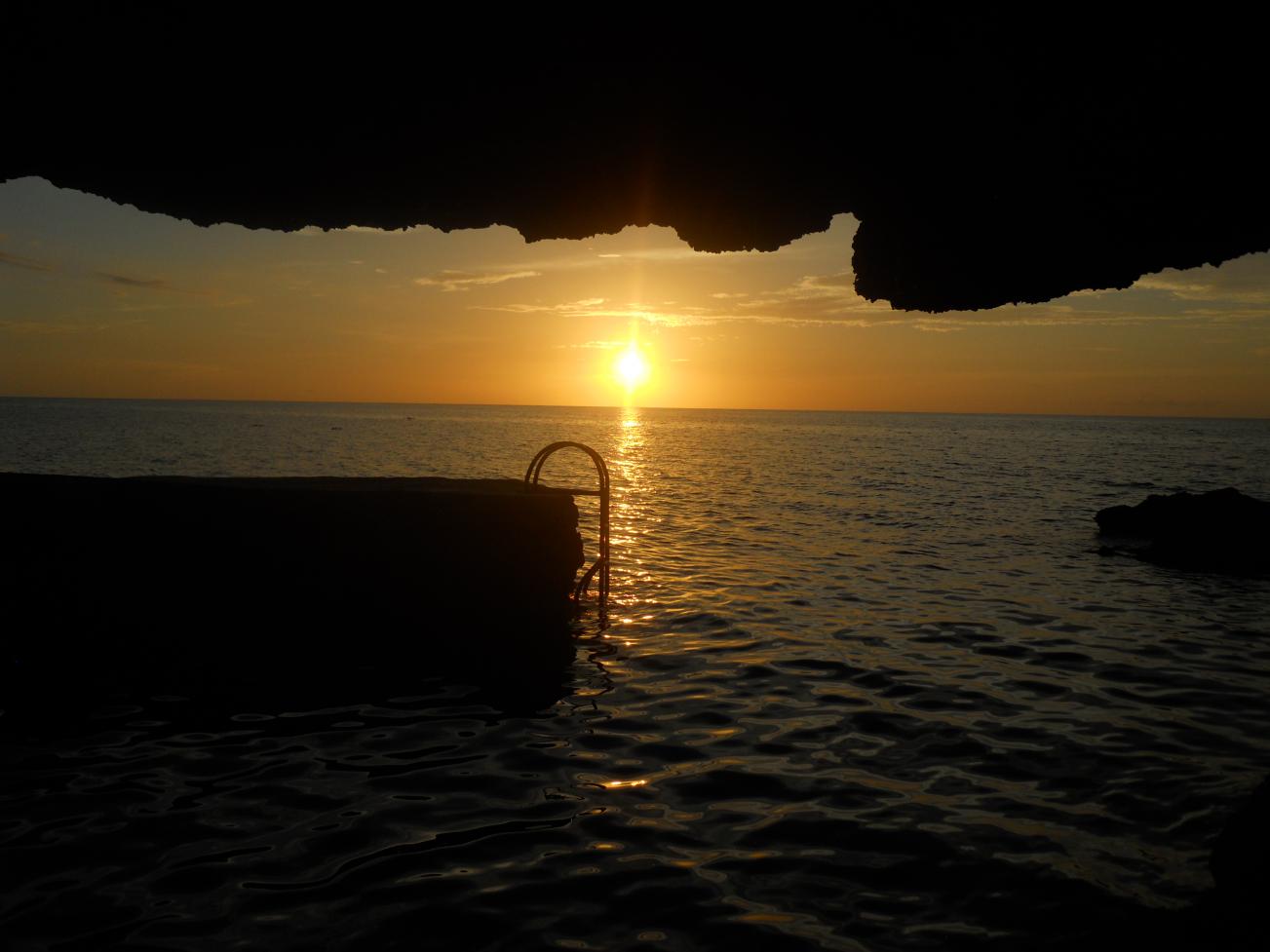 Of course we were the last ones on the bus and the only folks on the cliffs on the bus, but we arrived to Xtabi safe and sound. Upon first look, both of our jaws literally dropped and I don’t really think that I picked my jaw up off the ground for the rest of the trip. We very quickly toured our room (#16 – much larger and roomy than we’d come to expect based on pictures!), congratulated ourselves on a job well done on the smooth trip, and dumped our stuff off, threw on swimsuits, and headed out. We hightailed it right across the road to the bar and the cliffs. We promptly ordered up two Rum Punches and again did some verbal back-patting while we sat down. The sun was on its way down and we were in pure awe. The drinks were quickly downed and before we could even think clearly, we headed down into the caves – all we could keep saying was “holy S#$*!” over and over again. My friend continually said, “I’m so happy! I’m so happy!” – it was that pure magic that only arriving just in time to experience perfection can bring. Attachment 30634Attachment 30635Attachment 30636