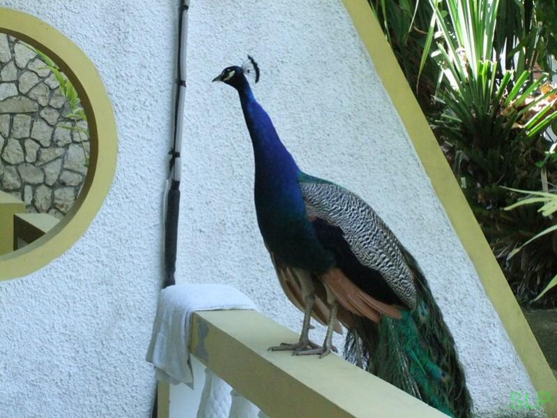 My morning visitor. BTW the peacocks seen at Grand Pineapple actually belong to Golden sunset but they do visit next door - LOL