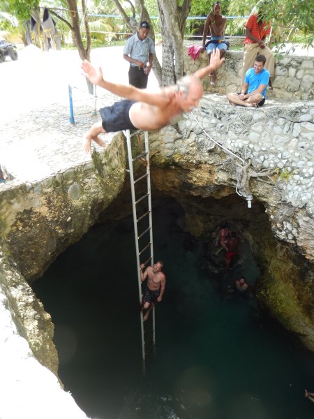 BJ a local doing a one and a half at Blue Hole