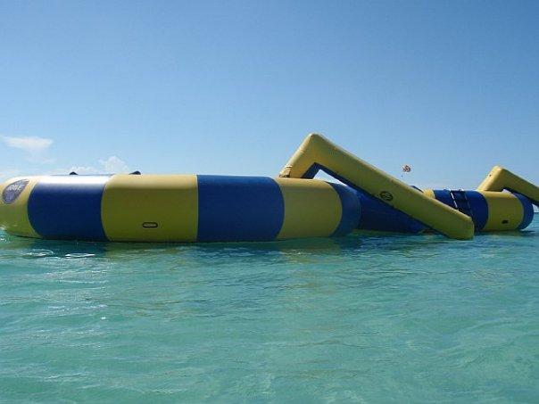 As stated previously, they have trampolines just offshore of Margaritaville, they are in about 5-6 feet of water.