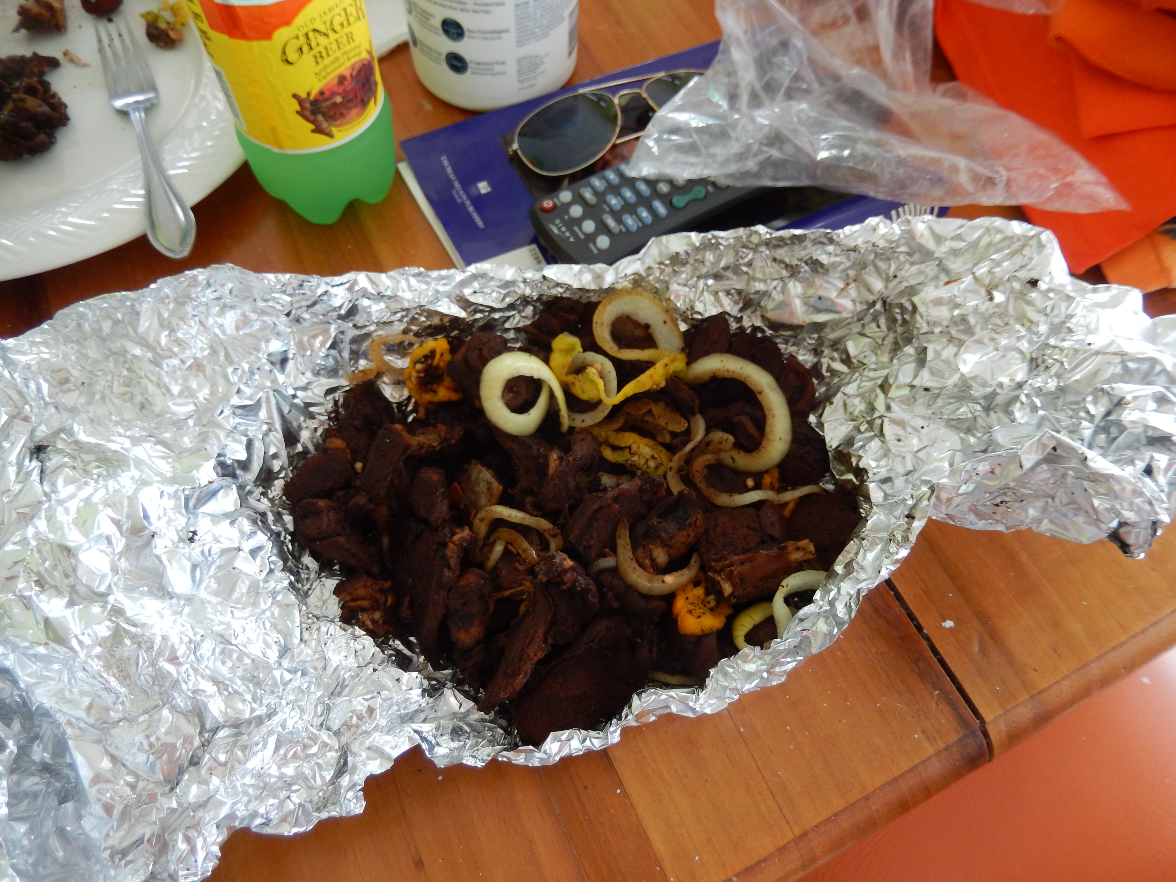 The last 3 are again a photo of curried goat at Pablo's, fresh peanuts from the peanut man and peppered shrimp from Middle Quarters
