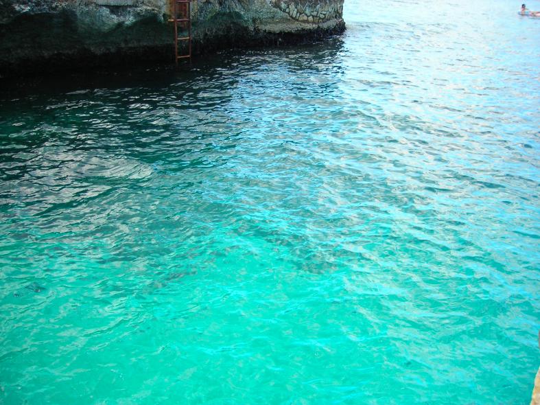 The cove was a great daily hangout. Take a look at the pick and swim out. You can go either to the left or right and snorkel. You can also jump from the cliffs from either side. To the left of the pic are the higher spots. I believe it was this night that one of our fellow travelers challenged Kevin at the bar to jump from the highest spot a couple of hours into the night. He threw a little cash in and next thing you know a guy comes running from the kitchen and makes the dip. The man who put up the challenge paid up. Next thing you know numerous folks jumped in. The seas were mellow that night and all was good. Just a great example of how the staff gets involved in all the fun.