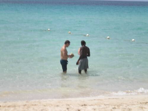 Not many people around at all. Which is the way I like it. Somewhere around Risky Business are a lot of Jamaican Teenagers having fun and playing in the water. Maybe some kind of local party. Last day of summer before school starts tomorrow (Monday).