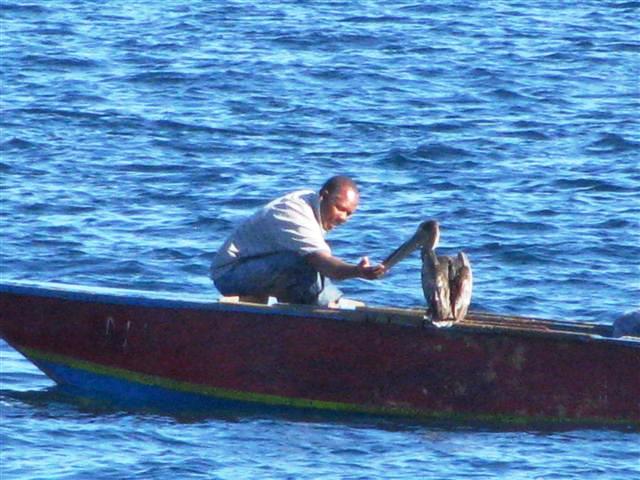 fisherman with pelican