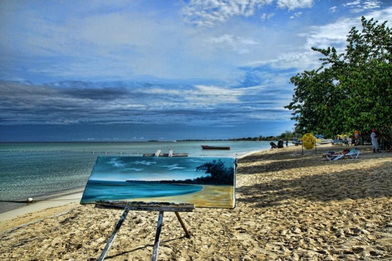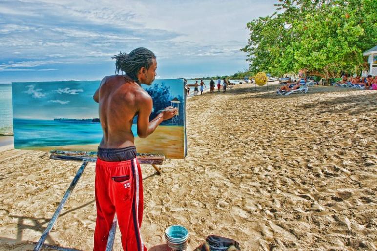 While staying at Merrils, I noticed an artist paiting a scene on a large canvas. He would be there in the mornings, sometimes quite early. His name was Michael and he was very interesting to talk to. Unlike some in Jamaica, he had no probelm with me taking his picture and actually encouraged me. Sadly, I had to leave before the piece was finished. Here's a few pictures: