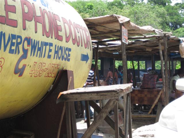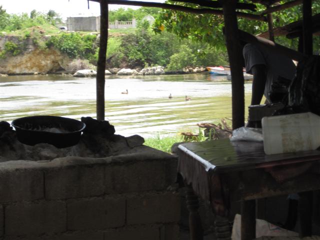 The driva bought me a shaved ice w/sour orange juice to try and it was SUPER great. Such a nice stop and they could not have been nicer kinder people there. I was the only tourist around but felt right at home. Even sweet ducks floating along the likkle cove where the cook shops are. WOW what a memory.......we drove on and I began to see that gorgeous wata and a feeling that I was home for real .....West End.